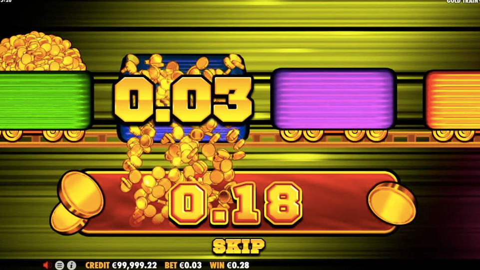 컴팩트한 디자인임에도 불구하고 이 슬롯은 높은 변동성 수준을 유지합니다. 이 게임은 수익성 있는 와일드 심볼과 예측할 수 없는 보너스 라운드를 포함하고 있습니다. 황금 기차의 반환율 (RTP)은 97.16%로, 대부분의 카지노 게임보다 훨씬 높습니다.